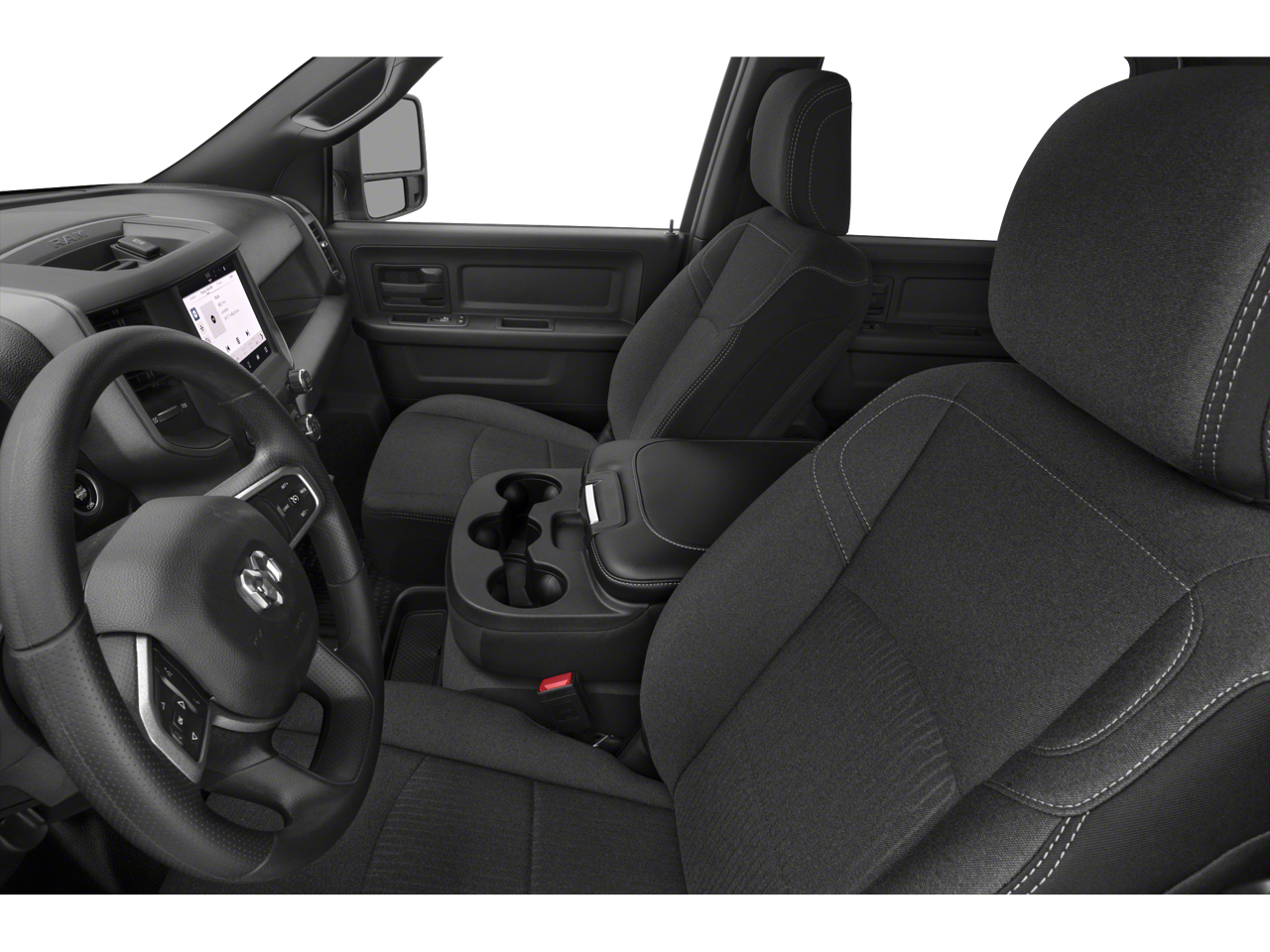2 Way Rear Headrest Seat, 4 Way Front Headrests, 40/20/40 Split Bench Seat, Black Exterior Mirrors, Bright Front Bumper, Bright Rear Bumper, Center Hub, Chrome Appearance Group, Chrome Grille Surround, Chrome Headlamp Bezels, Cloth 40/20/40 Bench Seat, Exterior Mirrors Courtesy Lamps, Exterior Mirrors w/Heating Element, Exterior Mirrors w/Supplemental Signals, For More Info, Call 800-643-2112, Front Armrest w/Cupholders, Manual Adjust 4-Way Driver Seat, Manual Adjust 4-Way Front Passenger Seat, Manual Folding Exterior Mirrors, Manual Telescoping Mirrors, Matte Black Mesh Grille w/Chrome, Mirror Running Lights, Power Adjust Mirrors, Power Adjustable Convex Aux Mirrors, Power Heated Folding Telescope Mirrors, Quick Order Package 2GA Tradesman, Rear Folding Seat, Rear Power Sliding Window, Rear Window Defroster, Remote USB Port - Charge Only, SiriusXM Radio Service, SiriusXM Satellite Radio, Storage Tray, Tradesman Level 2 Equipment Group, Wheels: 18 x 8.0 Steel Chrome Clad.